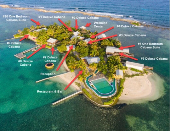 Enjoy one of eight air-conditioned Deluxe Cabañas on a 4-acre cay in Guanaja, Bay Islands. This scuba diving-focused vacation oasis offers views of neighboring cays and the lush mountainous island of Guanaja.